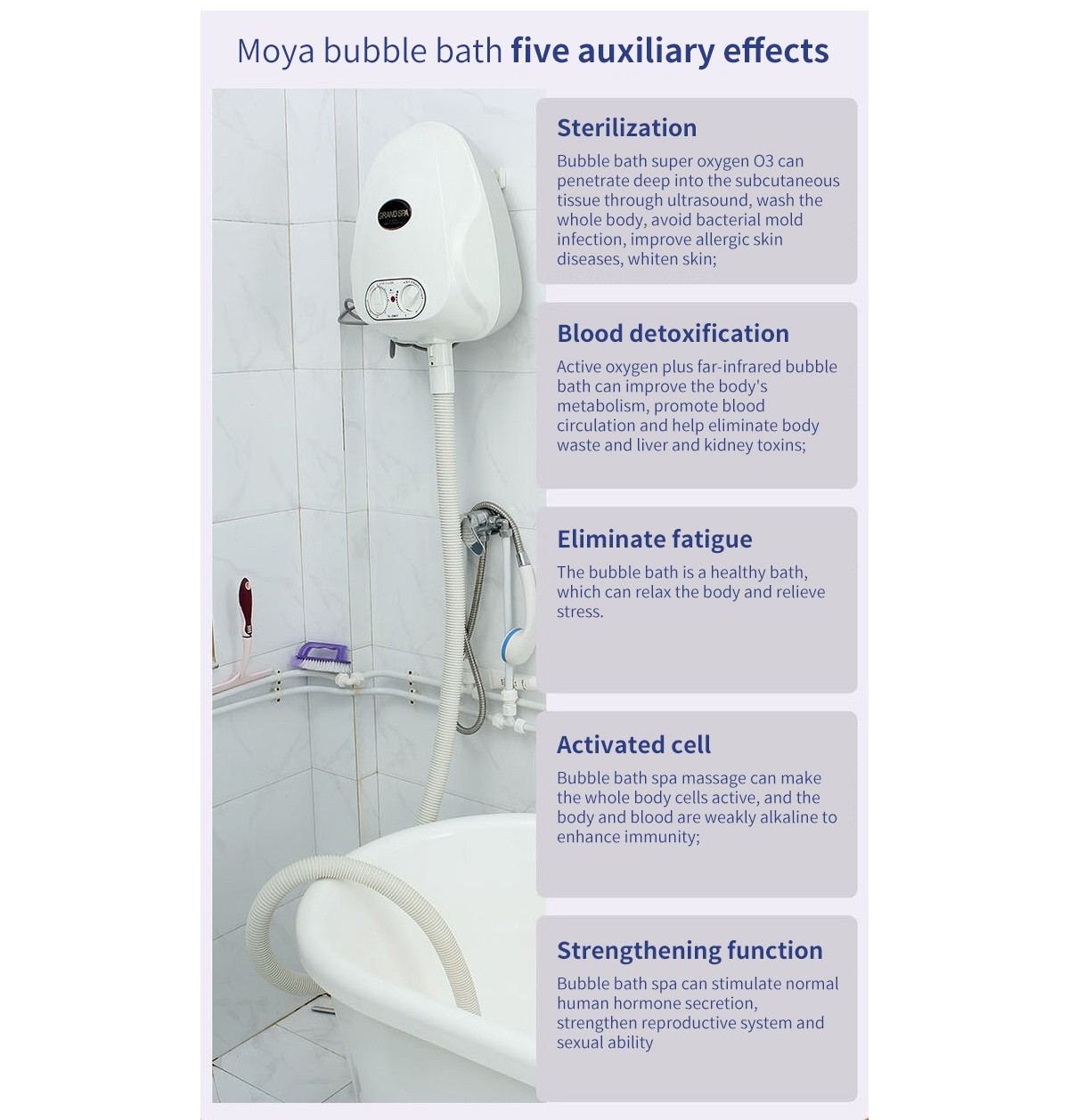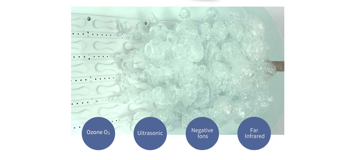 O₃ anióny | 1 000 000 o₃ naložené vzduchové bubliny za sekundu, čo zlepšuje kvalitu vody v kúpeli a okolitý vzduch v kúpeľni. | Nula | Nula | Nula |