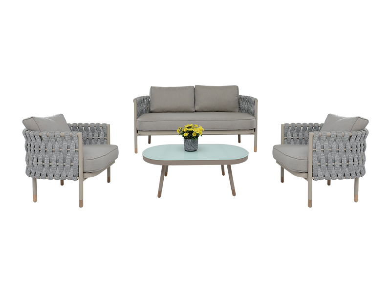 Špecifikácia | hliníkový rám s lanovým tkaním, celkom 4ks; Loveseat: L73*W141*H63CM, 1PC Single Stoličky: L73*W75*H63CM, 2ksový konferenčný stolík: L100*W50*H38 cm, 5 mm temperované biele sklo, 1pc |